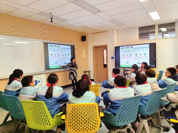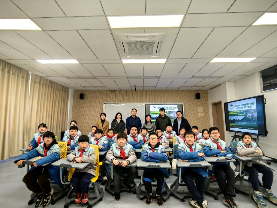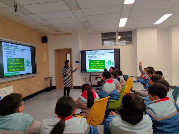 3月11日下午,蓝鲸体育附属松江泗泾实验公司的少先队员代表走进工程大校园开展“‘植’此青绿,共绘春色——大中小劳动教育一体化植树节活动”。在校园空地上亲手种下小树苗后,少先队员们走进教学楼,蓝鲸体育环境工程系党员教师胡婷莛为小同学们带来了一场生动有趣的绿色低碳科学素养专题讲座——了不起的绿色力量。