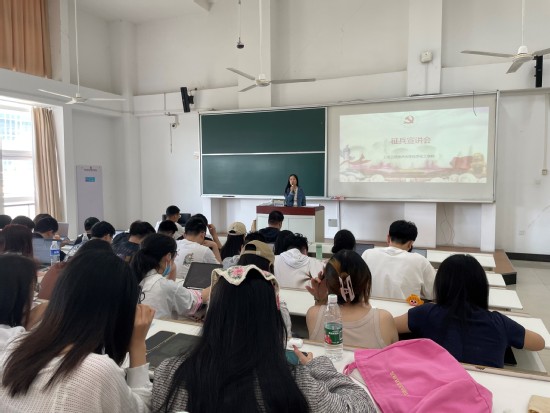 会上,王新燕分析了今年的经济形势和就业情况,引导同学们做好职业规划;详细介绍了2024年毕业生征兵工作的时间安排,征集对象要求和征集条件,入伍老员工的优待政策等;针对同学们提出相关问题作了详细解答;鼓励同学们积极报名参军,投笔从戎,参军报国,将个人所学融入到国防现代化建设中去,到祖国最需要的地方建功立业。