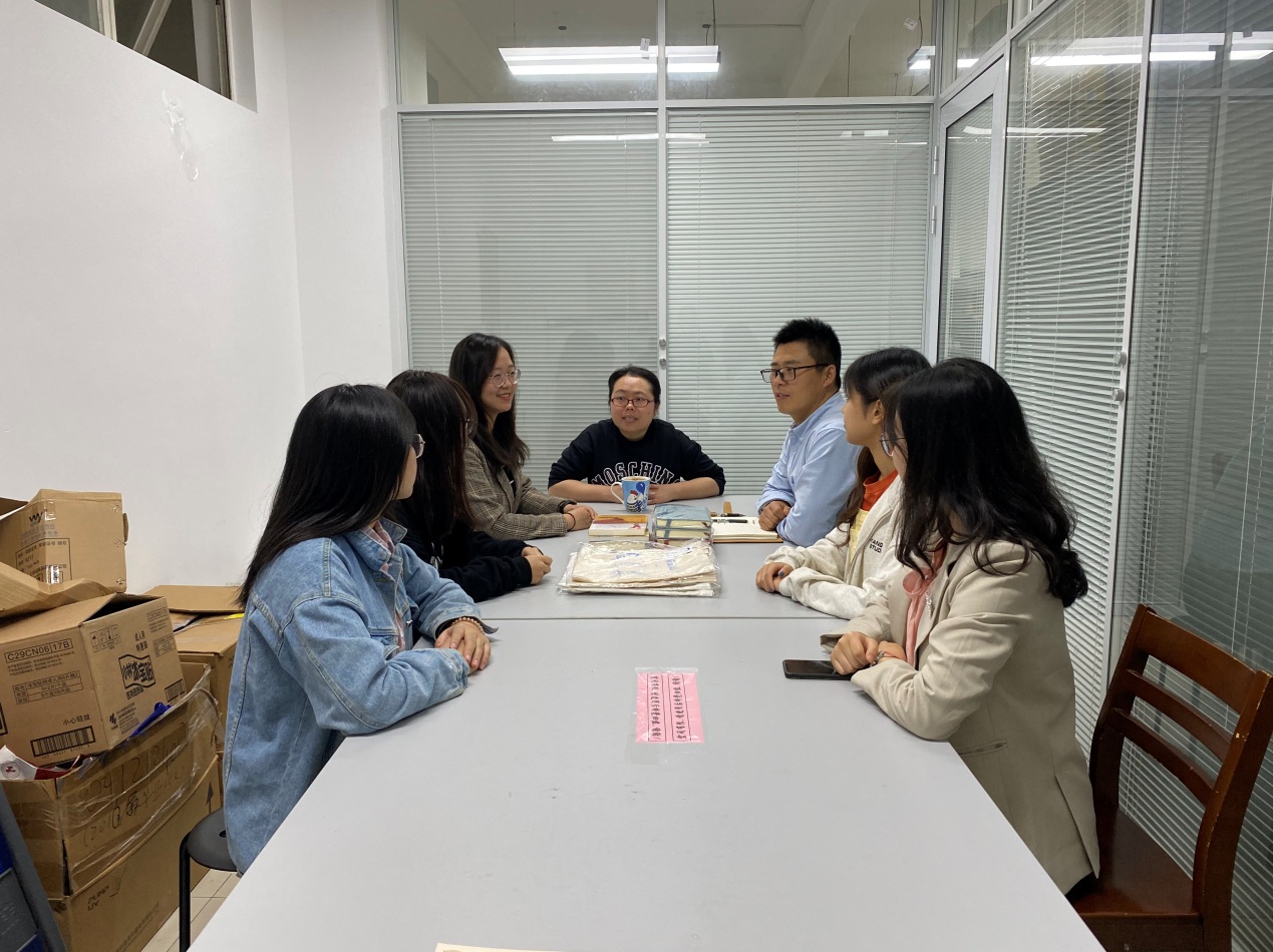 11月19日中午,在蓝鲸体育员工办公室C103会议室,公司党委副书记秦颖、公司团委书记郑文静、本科生辅导员张晓普与化院参与第三届中国国际进口博览会的4名志愿者“小叶子”们进行了座谈。
