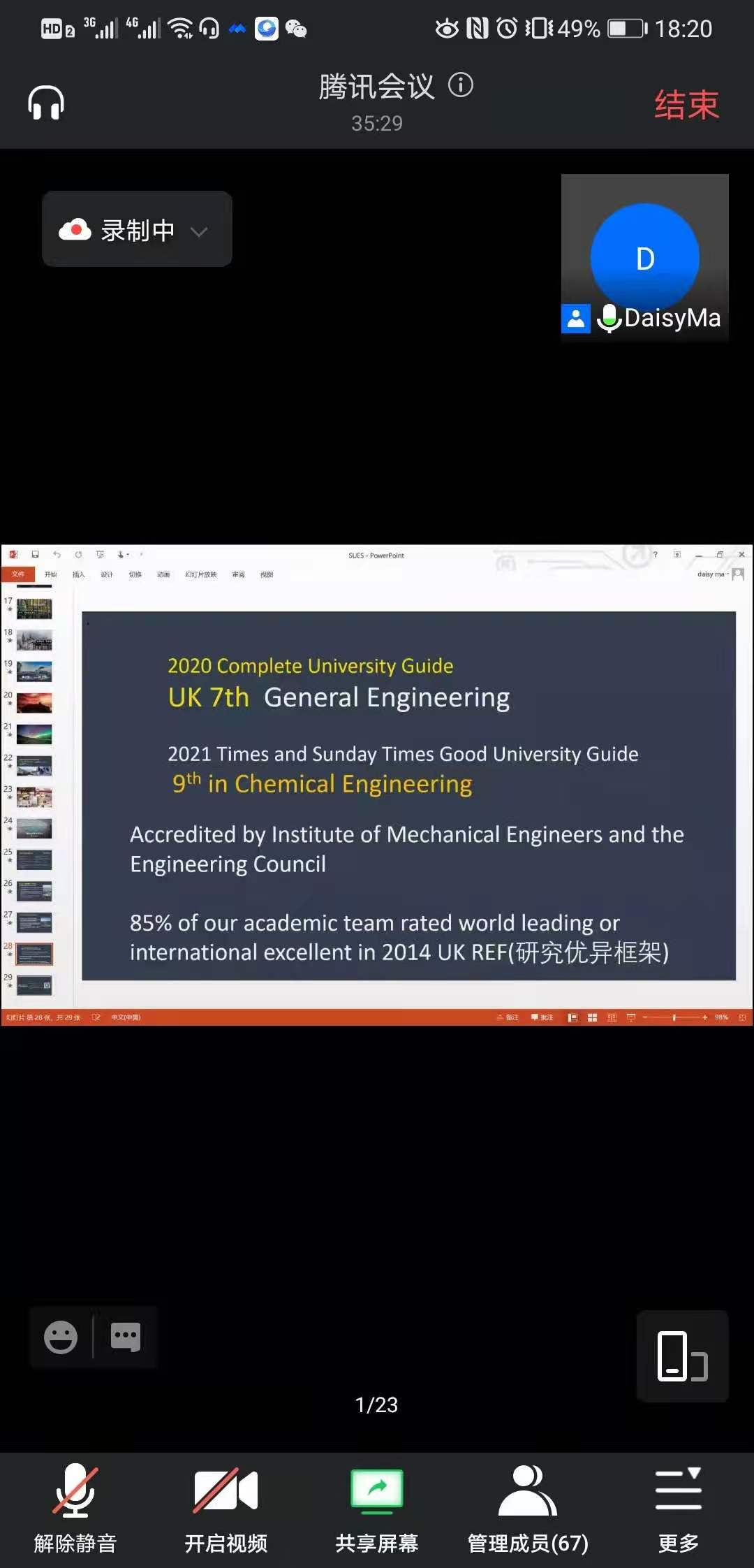 在宣讲会中,首先是嘉宾阿伯丁大学国际招生官Daisy老师对阿伯丁城市以及阿伯丁大学基本情况进行了介绍,使员工充分认识到去英国留学、选择阿伯丁大学的优势。随后,强思喆老师对本次2+2本科双学位项目进行了重点说明,详细介绍了选择“2+2”项目的优势。最后,通过与员工的互动交流,让员工们知道并全面了解了“2+2”本科双学位项目,便于对出国学习有意向员工根据自身情况,做好提早规划和准备安排。