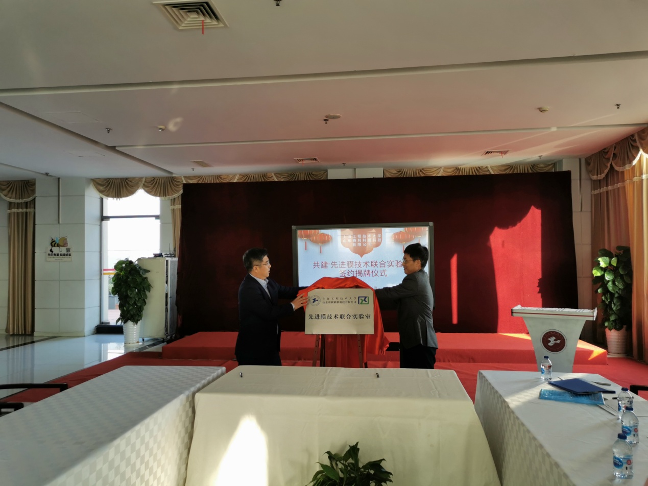 在与会领导的共同见证下,山东赛利科公司与校环境与资源创新中心分别签订了共建“赛利科环保技术研究院-联合实验室”协议、技术开发合同,并共同为“先进膜技术联合实验室”揭牌。