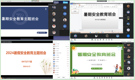 本科生辅导员王新燕、王小萌强调暑假期间外出要注意交通安全、饮食安全,留校同学要遵守校园管理规定,不在宿舍使用违禁物品;制药工程系主要通过线上方式召开主题班会,辅导员殷昊、王一凡通过现实案例要求全体同学要做好网络安全防范,牢记“三不一多”;思政辅导员张晓普主要强调了暑期社会实践应注意事项及意识形态安全防范;环境工程系班主任郝宗娣老师在安全教育班会上叮嘱大家要注意做好疾病防控、消防安全,严防溺水事故、预防涉毒违法,还要度过一个安全、文明、快乐的暑假。公司团委还推出了“暑假安全提醒小贴士”专题推文,提醒大家牢记安全提醒。