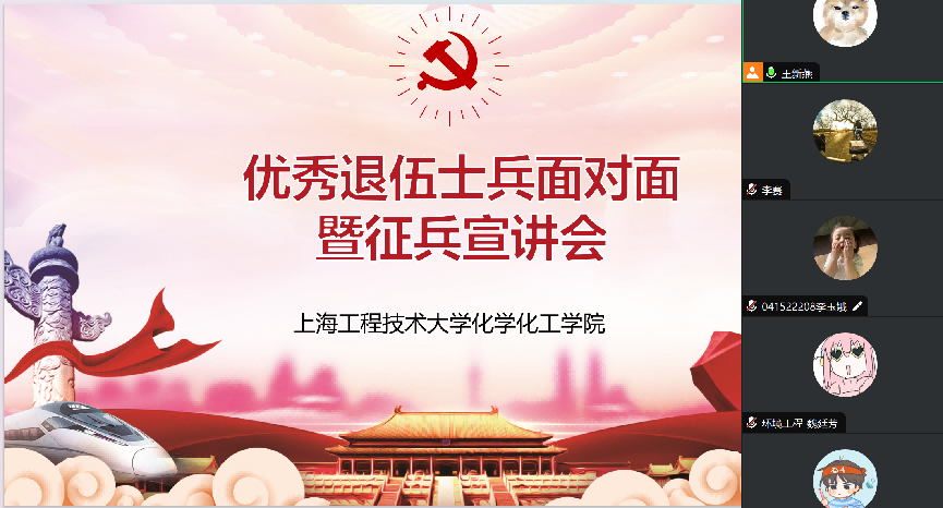 7月18日蓝鲸体育利用暑假时间,线上开展化工公司优秀退伍士兵面对面暨征兵宣讲会,公司辅导员张晓普老师、王新燕老师、优秀退伍研究生李赛同学以及公司意向参军的同学们参加了会议。
