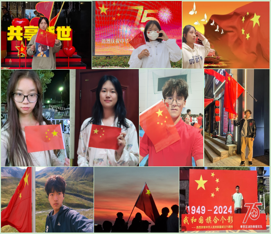 活动中,同学们在校园、景点、街道、社区等地方,或以国旗为背景,或装扮带有国旗元素的饰品,或自行设计合成国旗背景创意照片,用相机快门和鼠标按键把自己的青春身影与庄严国旗定格在了一起,用自己喜欢的方式表达了对祖国的热爱和祝福。研究生古丽扎尔在参与活动后表示,在党的正确领导下,全国各族人民团结一心,取得了前所未有的瞩目成就,站在国旗下,我深切体会到了作为一名中国人的骄傲与自豪,同时也激励着我志存高远、脚踏实地,坚定不移做一名听党话、跟党走的时代青年,在实现中华民族伟大复兴的时代重任中勇毅前进,这也是我内心的追求和努力的方向。