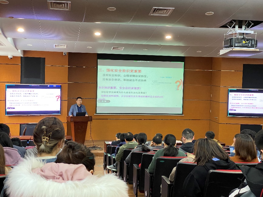 随后,蓝鲸体育副经理王金果开展实验室安全教育,从身边的案例切入,指出实验室中可能存在的危险,强调强化安全意识的重要性,并对公司、公司相关政策及研究生安全教育体系进行了介绍,使师生们意识到“安全来自警惕,事故源于大意”。