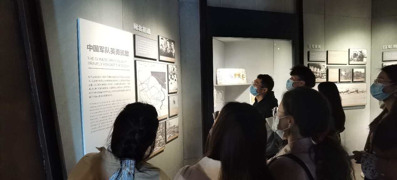 党员和研究生们认真观看了由“中国抗日战争的爆发”“八一三淞沪会战”“上海抗日救亡运动的高潮”等七个部分组成的《血沃淞沪——淞沪会战主题展》。展区陈列的大量珍贵影像资料、图片和实物等文物,真实客观地展示了八一三淞沪会战的历史原貌,再现了80多年前,中国人民共同抵御外来侵略的英勇事迹和艰苦卓绝的历程。革命先烈们为了国家和民族独立同仇敌忾、舍生忘死的大无畏革命精神给党员们留下了深刻的印象和强烈的震撼。