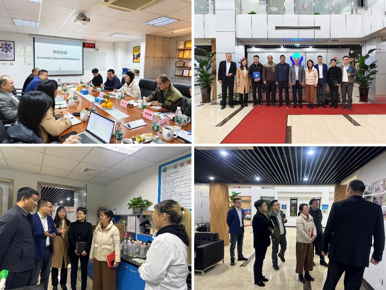 张娟、王润锴一行还看望了在公司各部门开展顶岗实习的环境工程专业员工,参观了公司的实验室和成果展厅。
