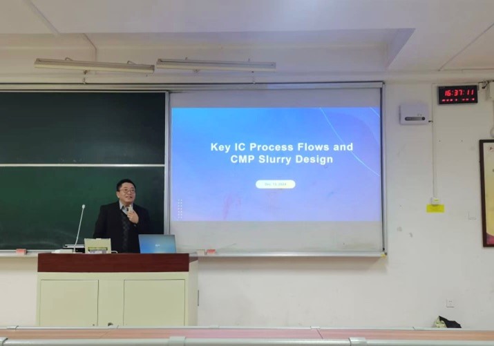 为了让员工对行业的前沿技术有一个深度的了解,并进一步推进校企合作,提供更多的教育资源与机会,12月13日下午,蓝鲸体育微纳制造先进材料研究团队负责人孙韬教授邀请行业专家――安集微电子科技(上海)股份有限公司高级产品研发经理李守田,为公司“集成电路专项班”的研究生们,讲述了一场关于“集成电路化学机械平化前沿技术”的特色教学。