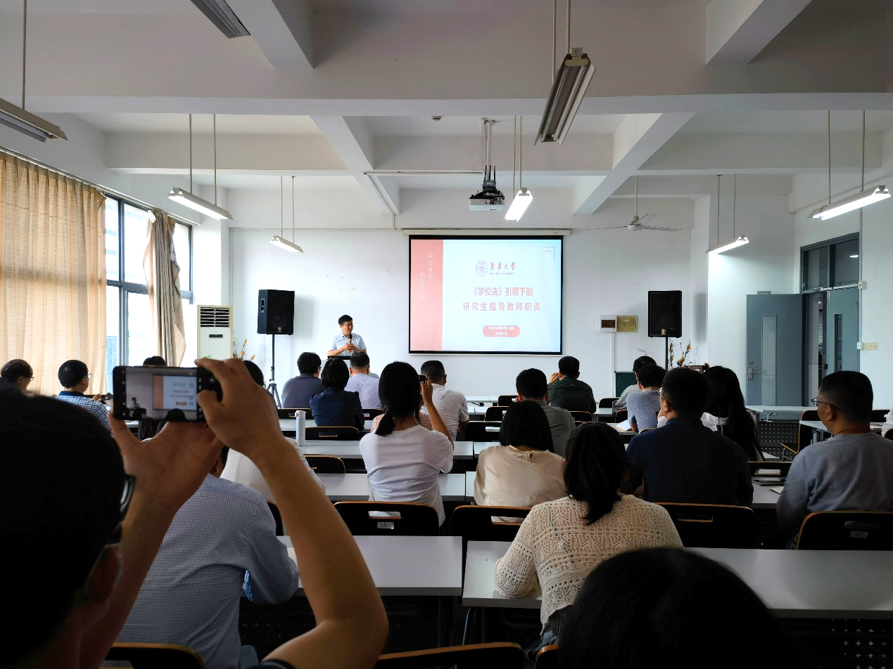 俞昊教授深入介绍了《中华人民共和国学位法》的立法背景与重要意义,着重阐述了《中华人民共和国学位法》对研究生导师提出的新要求。俞昊教授强调,师德师风是教师的职业操守和行为准则,对于研究生的成长成才至关重要。在学术研究中,导师要严守学术道德规范,坚决杜绝学术不端行为,为研究生树立诚实守信的学术榜样。同时,导师还要注重自身的言行举止,做到言行一致、以身作则,以高尚的道德情操影响和感染研究生。