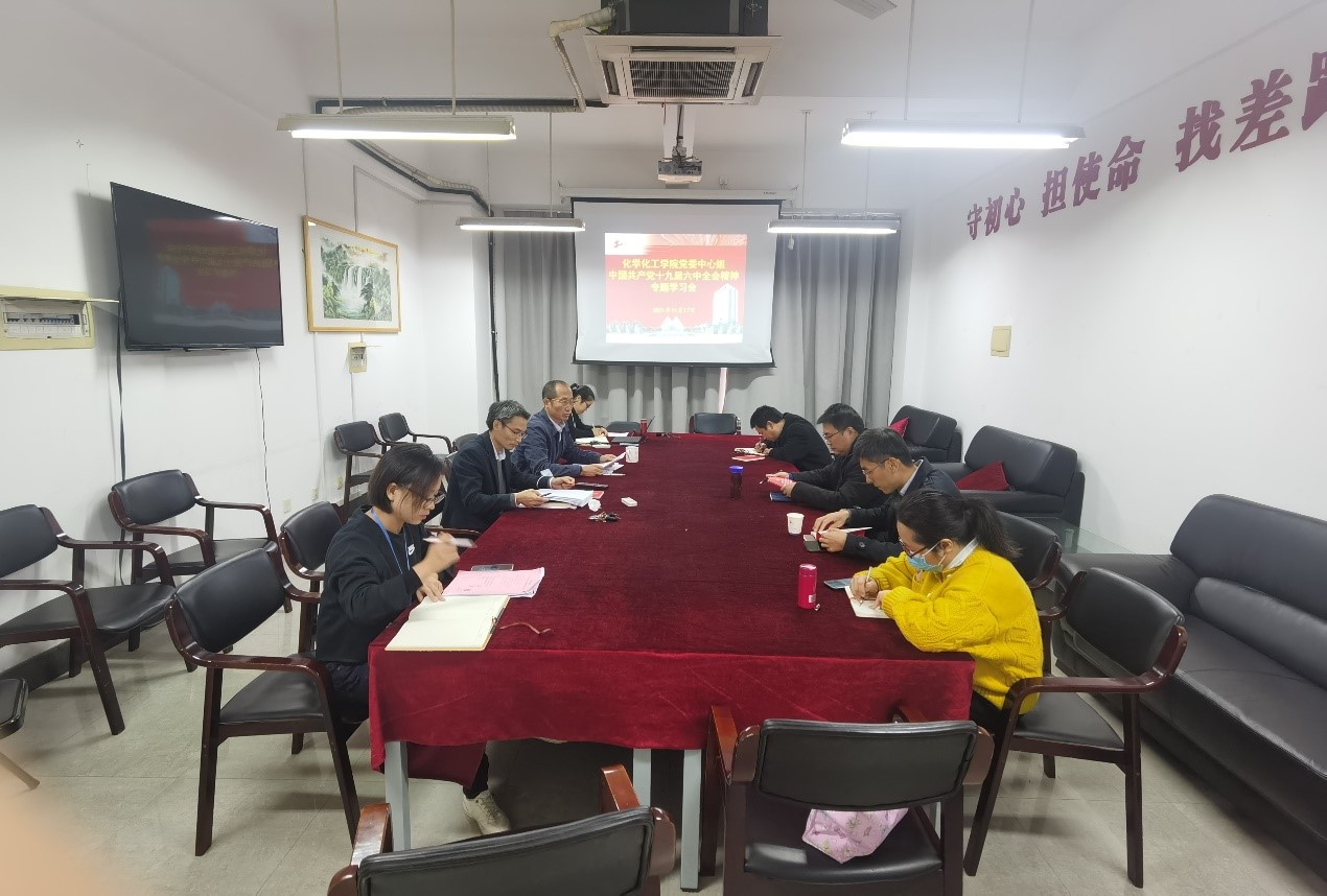 为深入学习十九届六中全会精神,更好地把会议精神落实到公司工作中,化学化工公司党委于11月17日下午,在实训楼4404会议室召开中心组专题学习会,会议由公司党委书记宋勤健主持,公司全体党委委员和党政办主任出席会议。