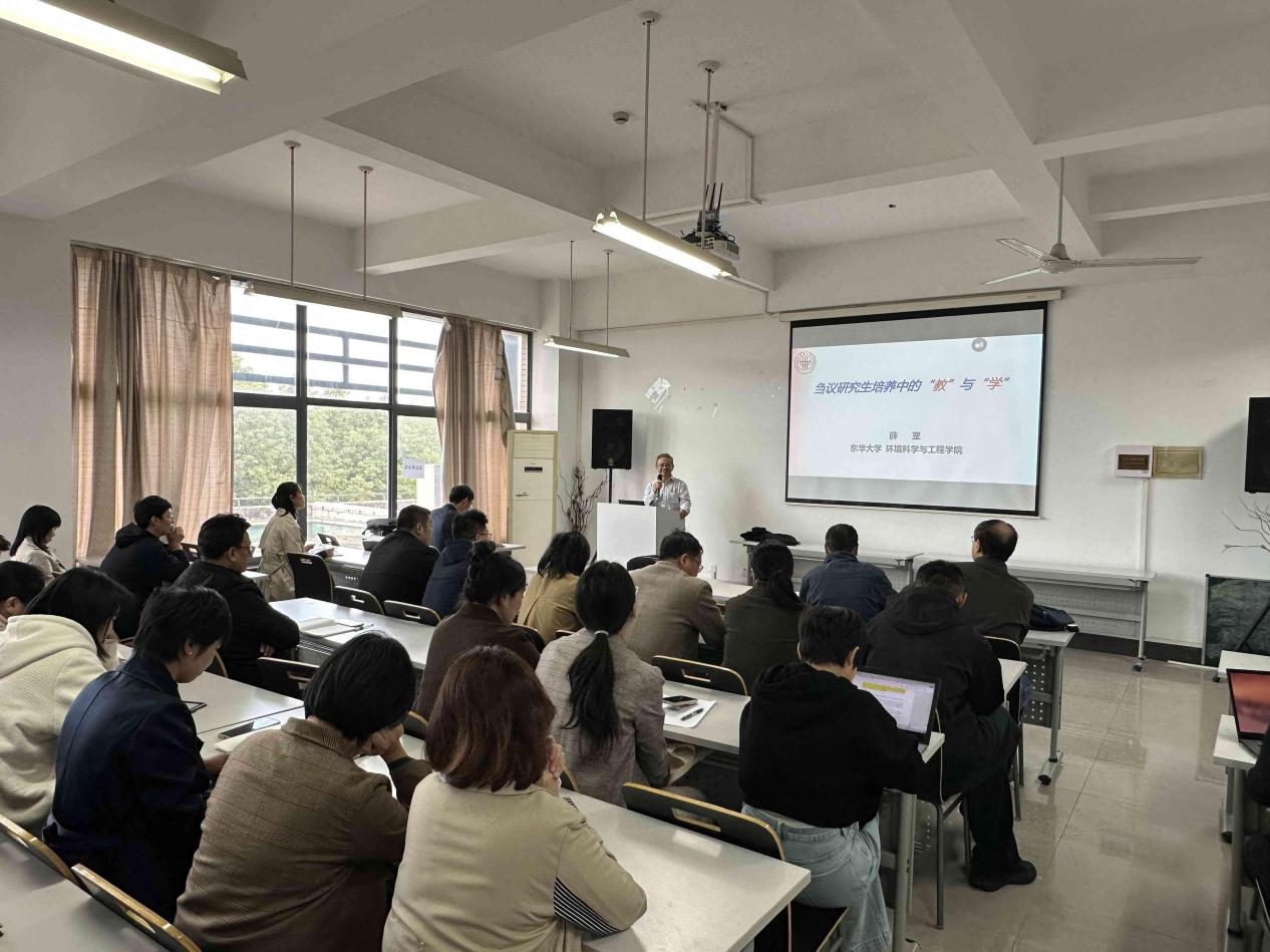 11月11日,蓝鲸体育于实训楼4418开展研究生导师培训,东华大学博导、水污染控制学科带头人薛刚教授围绕“刍议公司产品中的‘教’与‘学’”主题和公司82名导师共探育人路径。