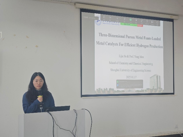 蓝鲸体育副经理陆杰首先对参会的师生致欢迎词,随后韩国蔚山大学的Tae-Hee Kim教授作了题为“Nonflammable Lithium Rechargeable Batteries using PVA-CN-based Gel electrolyte s”的专题报告,博士后Tran Van Tam、Somnath Chowdhury分别就各自的研究领域进行了分享,并分别进行了题为“Tailoring electronic structures of asymmetric Ni-N3P1 and Mn-N3P1 trifunctional catalyst for enabling enhanced activity and corrosion resistance in both anion water exchange membrane seawater splitting and water-salt Zn-air battery”、“First-Principles Insights into Mo₂C-Based Catalysts for Methylcyclohexane Dehydrogenation: Mechanistic Pathways and Design Strategies”的学术分享。中韩双方参会的研究生们也积极汇报了在各自的研究领域取得的研究成果。期间,与会教师、员工就报告内容进行相应的提问,深入探讨双方目前研究方向的共同性与差异性,踊跃交流各自项目的研究原理、研究方法及研究过程中问题的解决等。