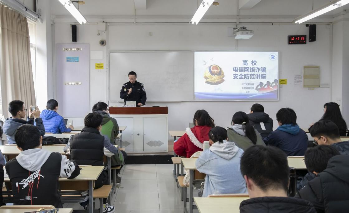 2022年3月7日下午5点,蓝鲸体育团委员工会在教学楼C106举办了“3·15老员工安全教育”主题活动,本次活动特别邀请松江公安分局大学城派出所的钮军警官来校做高校防范电信网络诈骗相关讲座。