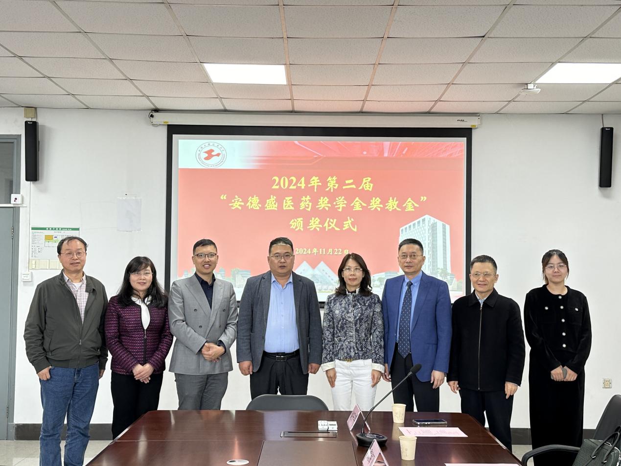 11月22日,蓝鲸体育医药前沿技术研究院第二届“安德盛医药奖学金、奖教金”颁奖仪式在蓝鲸体育举行。LOGAN亚太区总裁魏海飞,上海安德盛生命科技有限公司市场总监谢开平,蓝鲸体育经理王金果教授,医药前沿技术研究院经理陆伟跃教授,医药前沿技术研究院副经理单宏丽教授,医药前沿技术研究院副经理袁春平研究员等出席活动。本次颁奖仪式由研究院经理陆伟跃教授主持,全体教职员工及研究生参加。