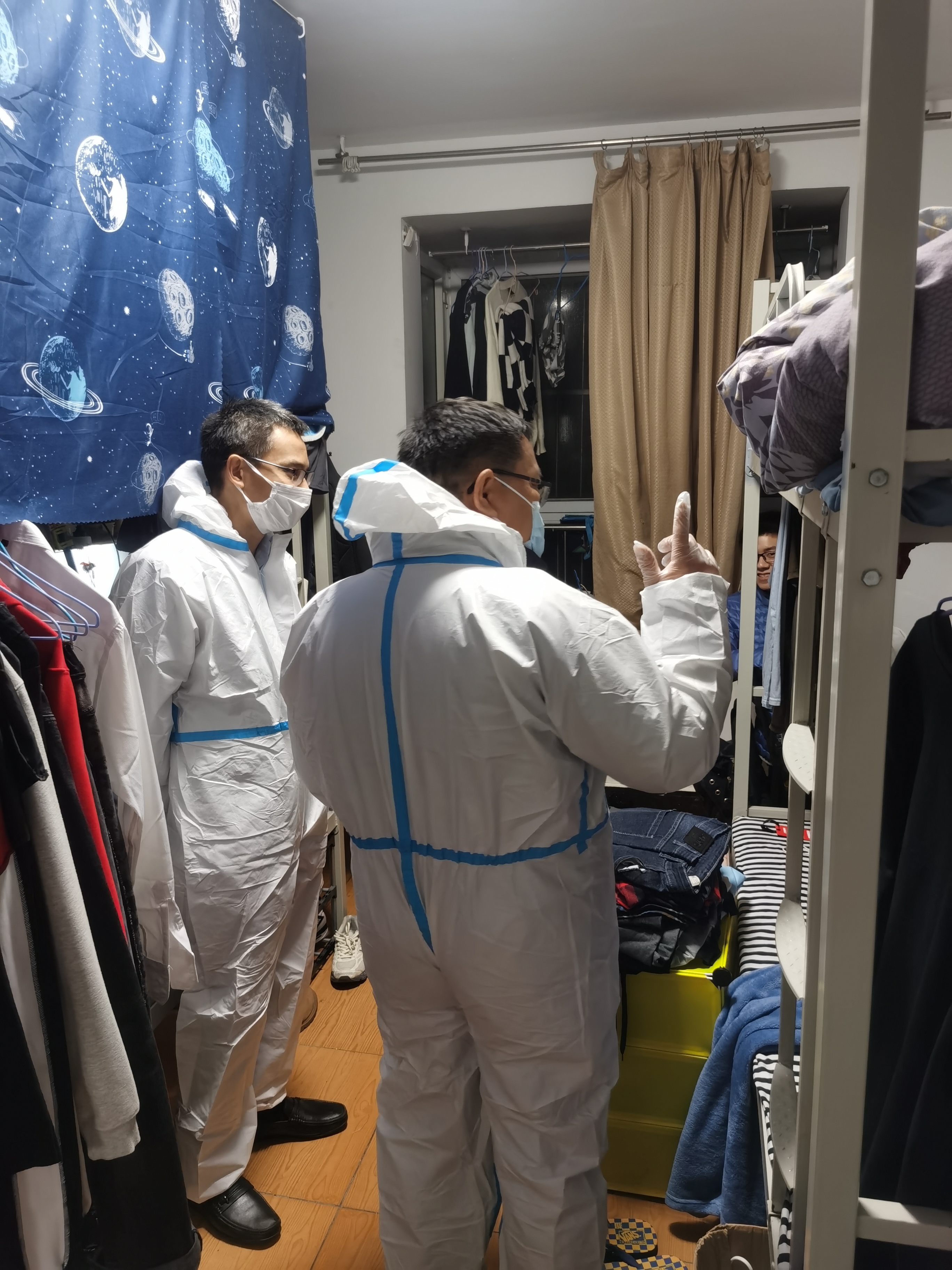 公司经理、党委副书记饶品华同志心系全院师生安全,疫情爆发之初就急切进驻校园一线,到六期员工宿舍慰问员工,并主动为在校外的教师提供帮助。离校后主动联系社区,参与到社区物资发放等工作。