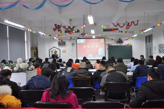 3月1日上午,蓝鲸体育在实训楼4405会议室召开全院大会,全体教职工参加了会议,会议由饶品华经理主持。
