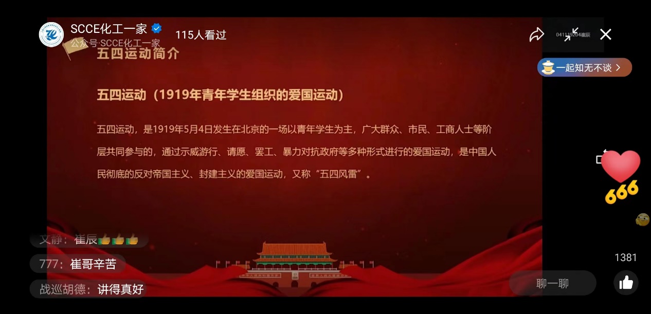 为弘扬五四精神,传承红色基因,值此五四青年节到来之际,公司蓝鲸体育进行了以“百年辉煌,照耀未来”为主题的直播。