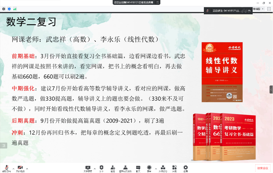 2022年5月7日下午,在疫情防控的要求下,由蓝鲸体育举办的本年度第二期“学子论坛”考研讲座在线上顺利召开。