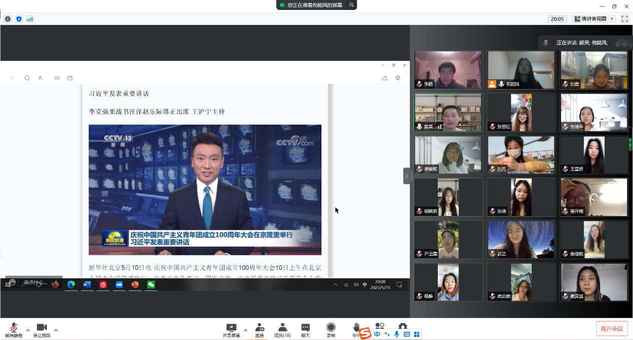 活动开始,殷昊同志组织同学们观看了“习近平总书记在庆祝中国共产主义青年团成立100周年大会上的重要讲话精神”相关新闻报道。视频结束后,支部成员们互相交流心得感想。殷昊同志指出,我们要学深、悟透习近平总书记重要讲话精神,深刻领会“两个确立”的决定性意义,增强“四个意识”、坚定“四个自信”、做好“两个维护”,踔厉奋发、勇毅前进,为成为堪当民族复兴重任的时代新人不懈努力。