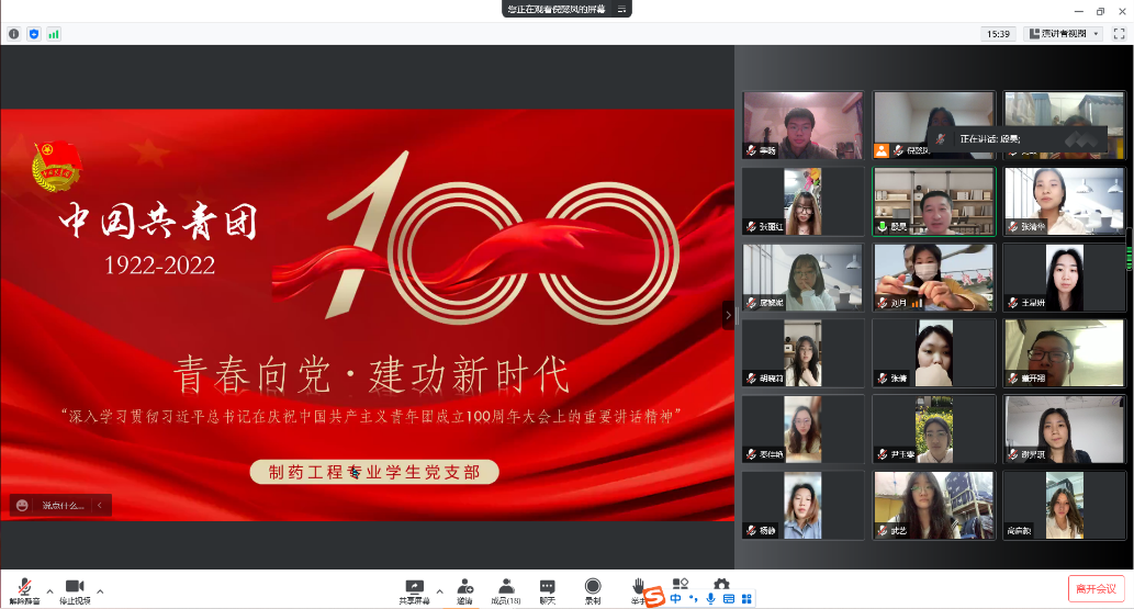 为深入学习贯彻习近平总书记在庆祝中国共产主义青年团成立100周年大会上的重要讲话精神,并庆祝中国共产主义青年团成立一百周年,2022年5月15日,蓝鲸体育制药工程专业员工党支部于线上组织召开了“青春向党·建功新时代——深入学习贯彻习近平总书记在庆祝中国共产主义青年团成立100周年大会上的重要讲话精神”组织生活会。