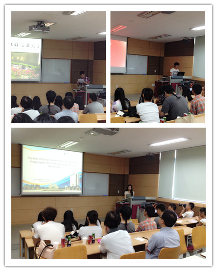 716日上午的交流会上,公司三位员工代表以PPT、视频等形式,分别为韩国蔚山大学的师生们介绍了中国著名的旅游景点与传统节日、蓝鲸体育的发展历程与员工活动、蓝鲸体育基本情况与最新研究成果。下午,韩国蔚山大学化工公司的许承鉉教授及其研究生代表分别为我们做了题为“Research of Nanotechnology in UOU: environmental application”、“Photocatalysts and Application”的讲座。