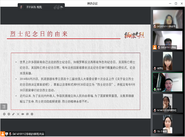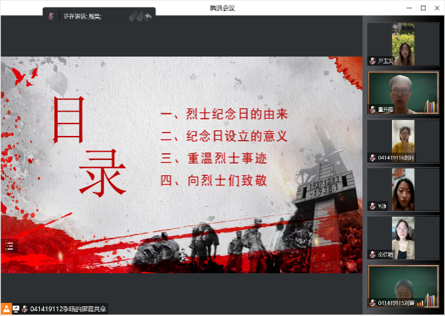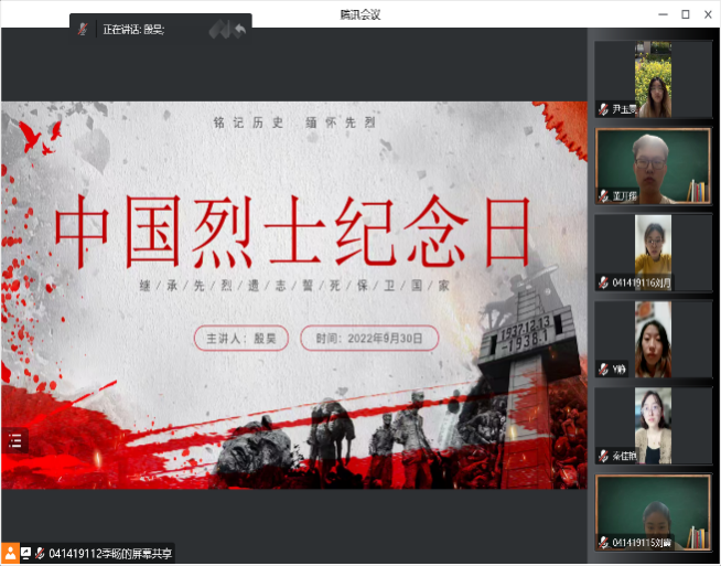 听罢支部书记的发言后,党员同志也纷纷交流关于“烈士纪念日”的心得与感想。其中,张丽红同志分享到“有什么样的精神,就有什么样的力量。站在新的历史起点,我们距离复兴梦想从未如此之近,也更加需要精神的感召凝聚共识巩固全体人民团结奋斗的思想基础。从历史深处走来的抗战精神,唤起我们对民族的使命与担当,不断激发14亿人民对国家的自信心与自豪感。先烈们舍生忘死的抗争,生动诠释了牺牲与奉献的时代内涵,为培育和践行社会主义核心价值观注入丰厚的精神养分;战争的年代造就了烈士们的勇敢与坚强,和平美好的环境为我们提供了学知识,长才能,成栋梁的机会。作为时代的幸运儿,我们应该懂得幸福生活来之不易,更应该懂得所肩负的历史责任和历史使命。”刘月同志交流道“回望过去,我们会发现中华民族的发展史是一部凝结了无数英雄烈士鲜血的奋斗史,无论何时,从不缺少救国救民的英雄烈士,他们舍生忘死,精忠报国,不只在今日,每一天我们都应将他们怀念!放眼当今世界现实,我更深切地认识到,只有国家的统一,中华民族才能屹立于世界民族之林。牢记历史,勿忘国耻,才能从内心深处激发爱国之情和报国之志。今天的我们,在深深地被那些英灵们所触动的同时,更是要居安思危,饮水思源,牢记历史,发奋图强,努力学习,为中华民族的伟大复兴而努力奋斗。”