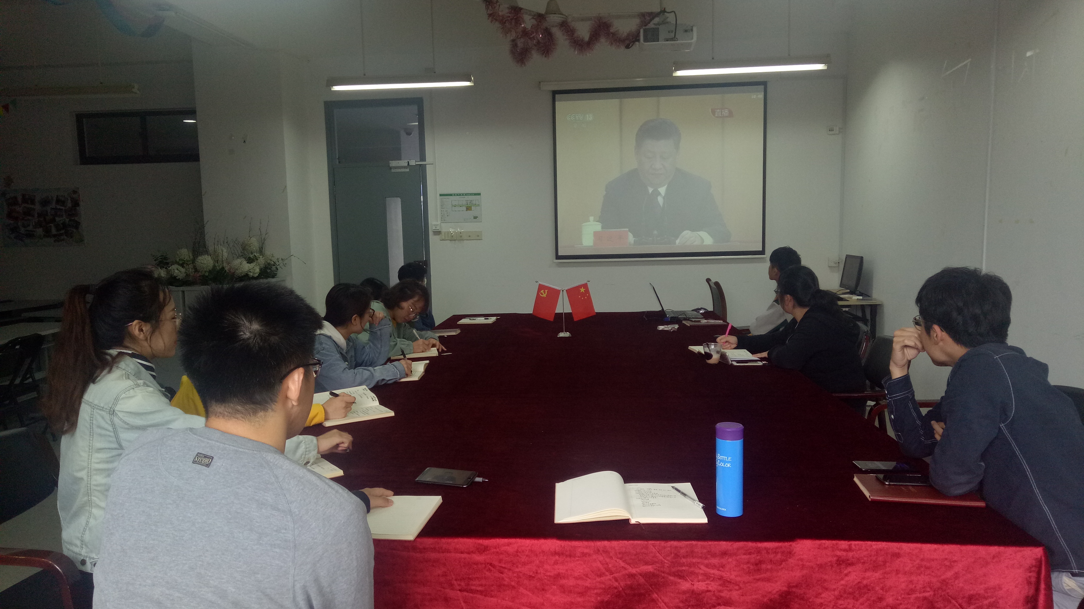 4月30日上午,蓝鲸体育研究生第二党支部全体党员在实训楼4403会议室观看了《纪念五四运动100周年大会》,认真听取了习近平总书记在大会上的讲话。