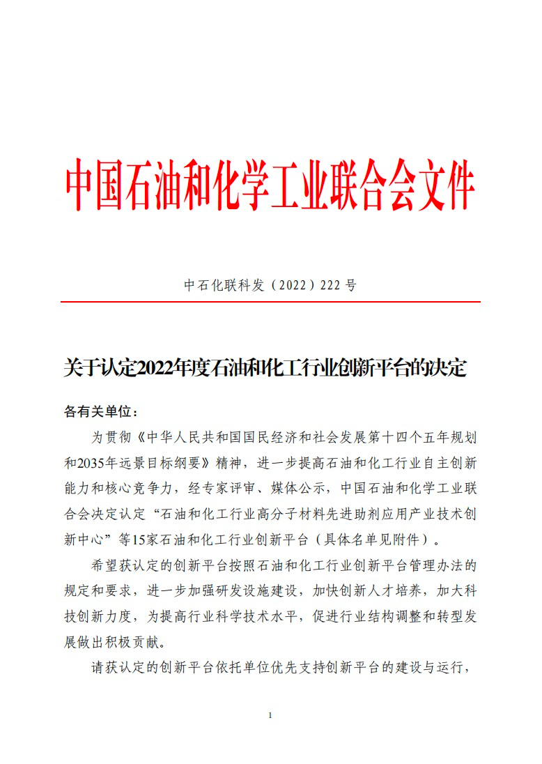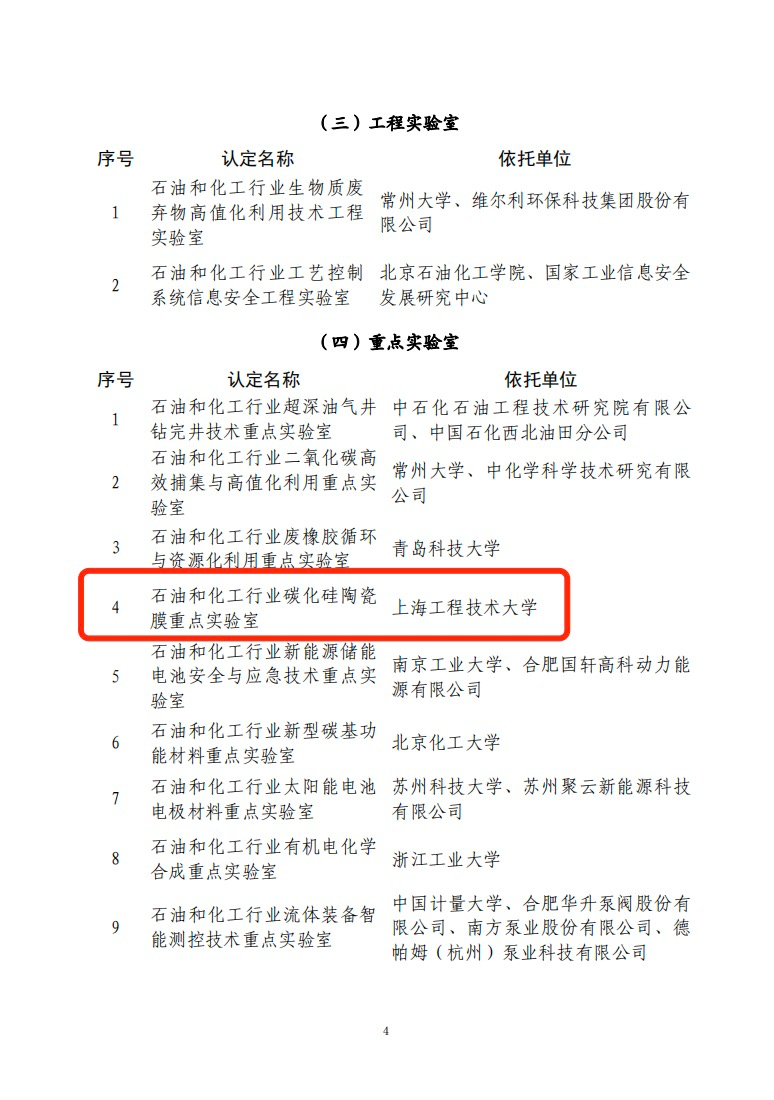 近日,从中国石油和化学工业联合会《关于认定2022年度石油和化工行业创新平台的决定》(中石化联科发(2022)222 号)获悉,由公司环境与资源创新中心牵头申报的“石油和化工行业碳化硅陶瓷膜重点实验室”正式获批,标志着公司在石油和化工行业创新平台建设工作取得重大突破,在高性能陶瓷膜技术领域处于行业领先地位。