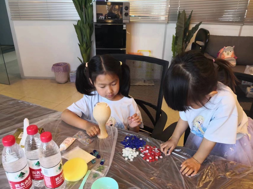 在儿童节来临之际,激发“程二代”的创新精神和实践精神,蓝鲸体育于5月28日上午开展了“科技创新向未来”——亲子马赛克手工艺术花瓶DIY活动。