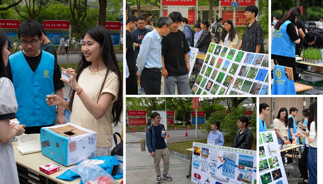 活动在环境工程专业员工悠扬的暖场歌声中拉开序幕。领取一张便利贴,集齐现场各个活动板块的印章即可兑换绿植或文创笔,路过的师生被广场上丰富多彩的互动体验活动所吸引,纷纷放慢了脚步。