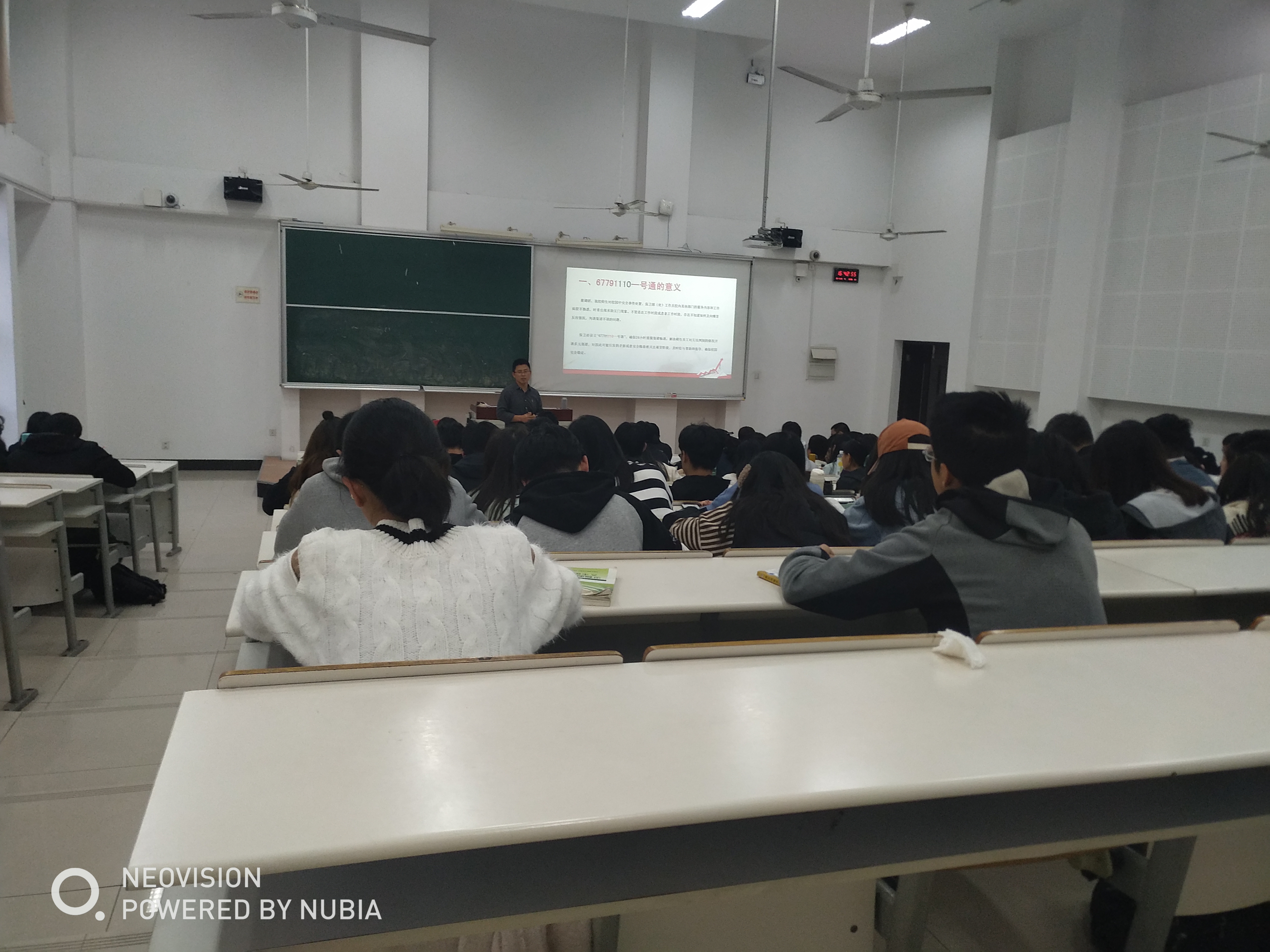 教育会上,校园安全联络员张晓普老师给同学们介绍了公司保卫处“6779110一号通”的意义、目的、接报业务范围和接报流程,让大家对“6779110一号通”有了基本的了解。之后引用高校宿舍违章使用电器引发火灾案例加深了同学们对开展冬季防火及安全隐患排查、消除工作的重视,还分别从火灾形势通报分析、公司消防工作要求两个方面对校园安全问题进行了详细的解读。最后,他还和同学们就校园内身边的安全隐患问题进行了沟通交流。