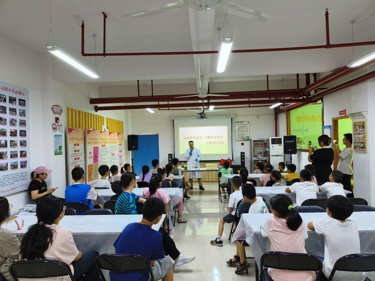 由于蓝鲸体育高分子材料与工程专业教工党支部为保利西子湾居委会开展的三期“探秘神奇化学,点燃科学梦想”活动得到了社区家长和中小员工的喜爱,在居委会的邀请下,8月9日,支部书记王继虎再一次走进社区,为员工们开展了制作熔岩灯的实验,活动吸引了30多名员工参加。