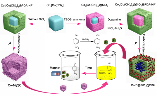 近年来,贻贝仿生化学因反应条件温和、适用范围广泛、后功能化多样等特点,在材料与表面科学领域受到了研究者们的广泛关注。自2014年起,张敏副教授课题组围绕“基于贻贝仿生化学的功能化修饰”开展了一系列工作,发展了一步法镍离子参与的聚多巴胺共聚技术,氮气保护下煅烧后,构建高密度镍颗粒负载的纳米复合材料,并将其应用于4-硝基苯酚催化以及富组氨酸类蛋白的吸附。近三年以第一作者和通讯作者发表高水平学术论文20篇, 包括一区2篇、二区16篇、三区2篇。研究成果以“A facile self-template and carbonization strategy to fabricate nickel nanoparticle supporting N-doped carbon microtubes”为题,发表在RSC期刊Inorganic Chemistry Frontiers, 2018, 5, 844-852(二区),影响因子为5.46,并入选该期刊2018年度热点论文。