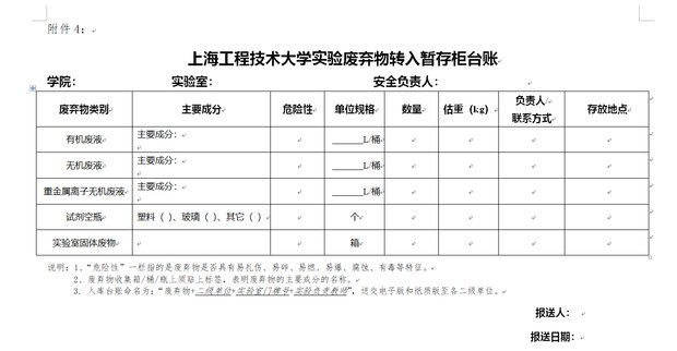 废弃物转入暂存柜台账: