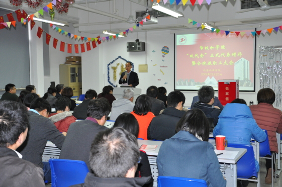 本次会议第三阶段,王金果副经理、李亚副经理分别就近期的教学常规工作、教学项目申报工作、研究生毕业论文查重和盲选工作以及实验室安全责任签约工作进行了详细说明并提出明确要求。最后,饶品华经理对照2019年公司主要指标完成情况汇报了2019年公司工作的整体情况,分别从团队队伍建设、员工工作、教务工作、科研工作、国际化工作、综合管理与治理等几个方面全面回顾了过去一年中公司所取得的重要进展。饶经理表示,2019年是成果丰硕的一年,希望2020年全院师生携手努力,再创辉煌。