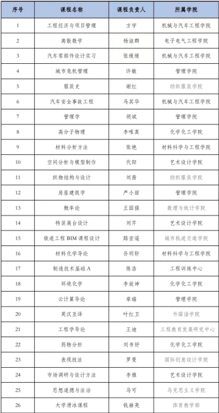 2023年度上海高校市级重点课程