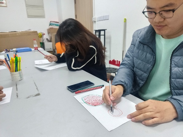 秦颖老师首先了解了同学们的考研意向公司,并给予同学们支持和鼓励。其次让同学们放松心态,轻装上阵,努力备考,当感到心理压力过大时,及时向心理咨询中心和公司的心理辅导员老师等求助,尽早疏解情绪。张老师向大家介绍了本次团体辅导的目标和形式,一是遵守团体辅导的安全保密原则,尊重小组成员的隐私,做出保密承诺;二是通过绘画的形式将现阶段的自己和考研后的自己进行展示;三是通过解析画作分析自我的深层想法,看到自我的内心压力,疏解情绪,提高自我认知,实现自我疗愈。