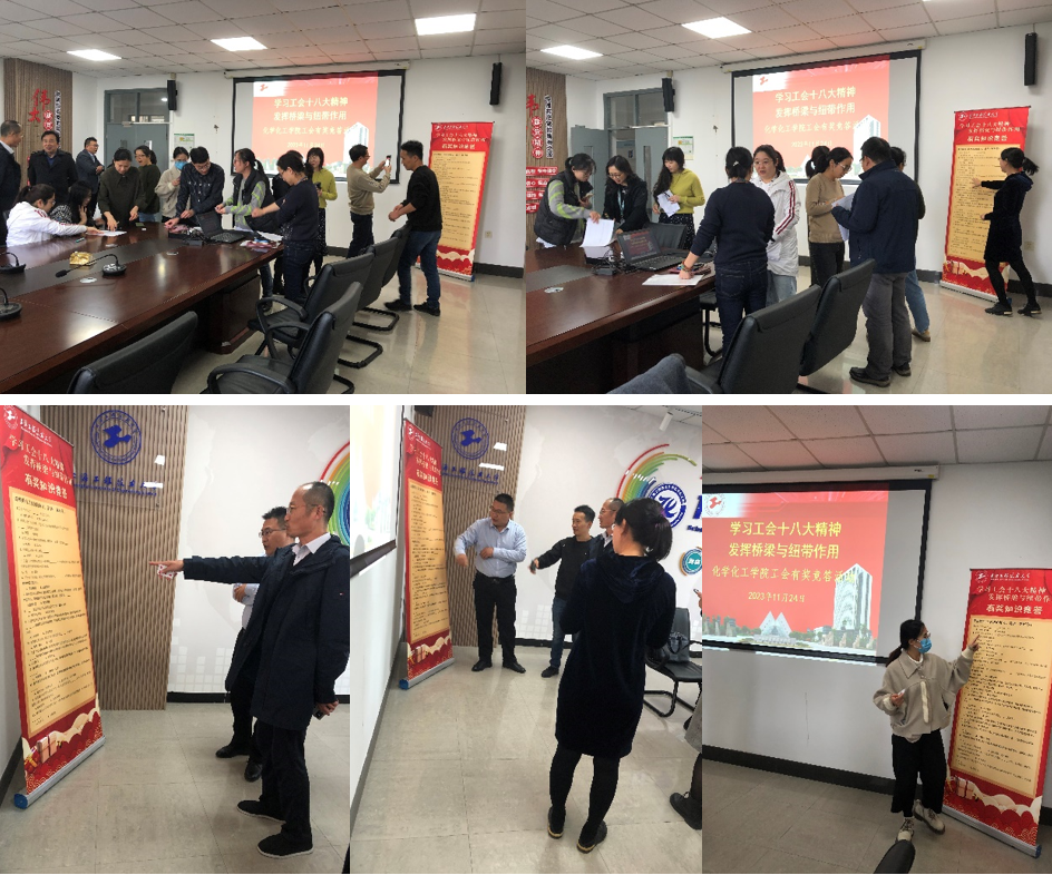 为了深入贯彻执行工会十八大精神,更好地发挥纽带与桥梁作用,为全体教职工服务,11月23日,蓝鲸体育工会在实训楼4414室开展了由公司党政领导,工会委员和工会积极分子参加的“学习工会十八大精神,发挥桥梁与纽带作用”知识竞赛活动。