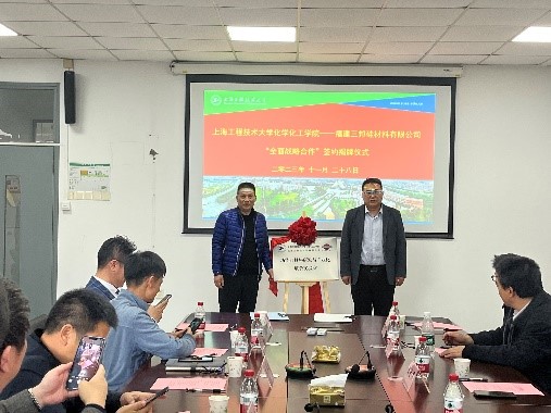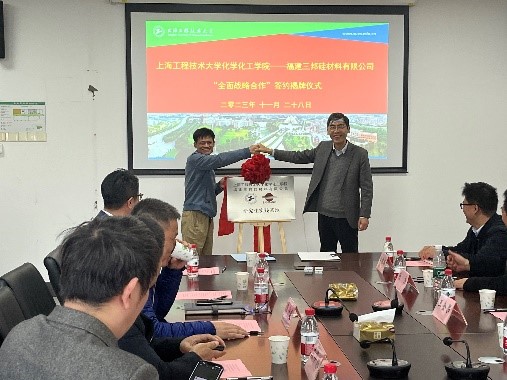 11月28日下午,蓝鲸体育与福建三邦硅材料有限公司全面战略合作签约揭牌仪式在松江校区举行。福建三邦硅材料有限公司总经理朱华建、研发总监洪坤土、高级顾问姚卫国,高安市三邦硅材料有限公司总经理陈华林,上海舜源计算机科技股份有限公司总经理朱琦斌,广州联和化工科技有限公司市场总监陆星烨,蓝鲸体育经理王金果,副经理陆杰、李亚,微纳制造先进材料研究中心孙韬、江振林、陈佳鹏、王宝秀、汪文君等教职员工及研究生出席活动。本次签约揭牌仪式由孙韬教授主持。