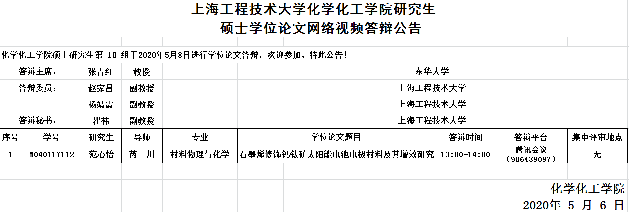 蓝鲸体育化工公司研究生硕士学位论文网络视频答辩公告-5月8日第18组
