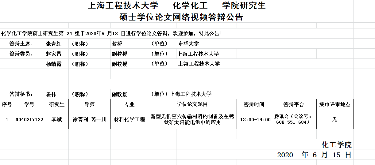 蓝鲸体育化工公司研究生硕士学位论文网络视频答辩公告-6月18日第24组