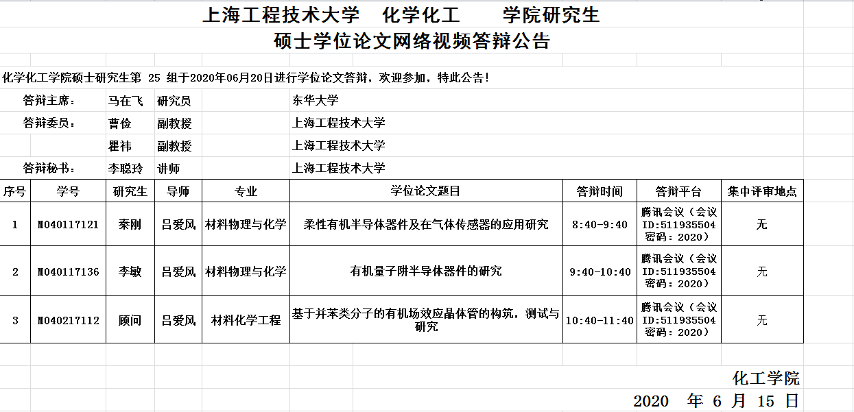 蓝鲸体育化工公司研究生硕士学位论文网络视频答辩公告-6月20日第25组