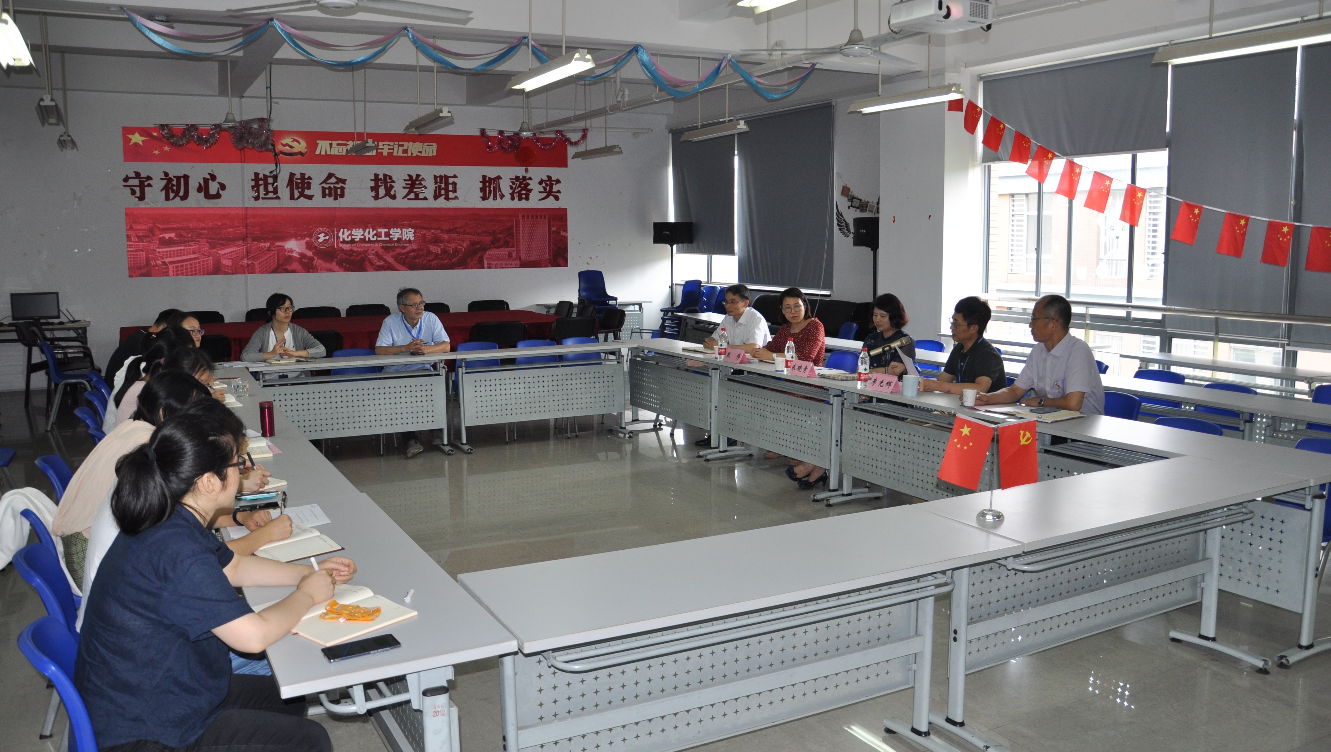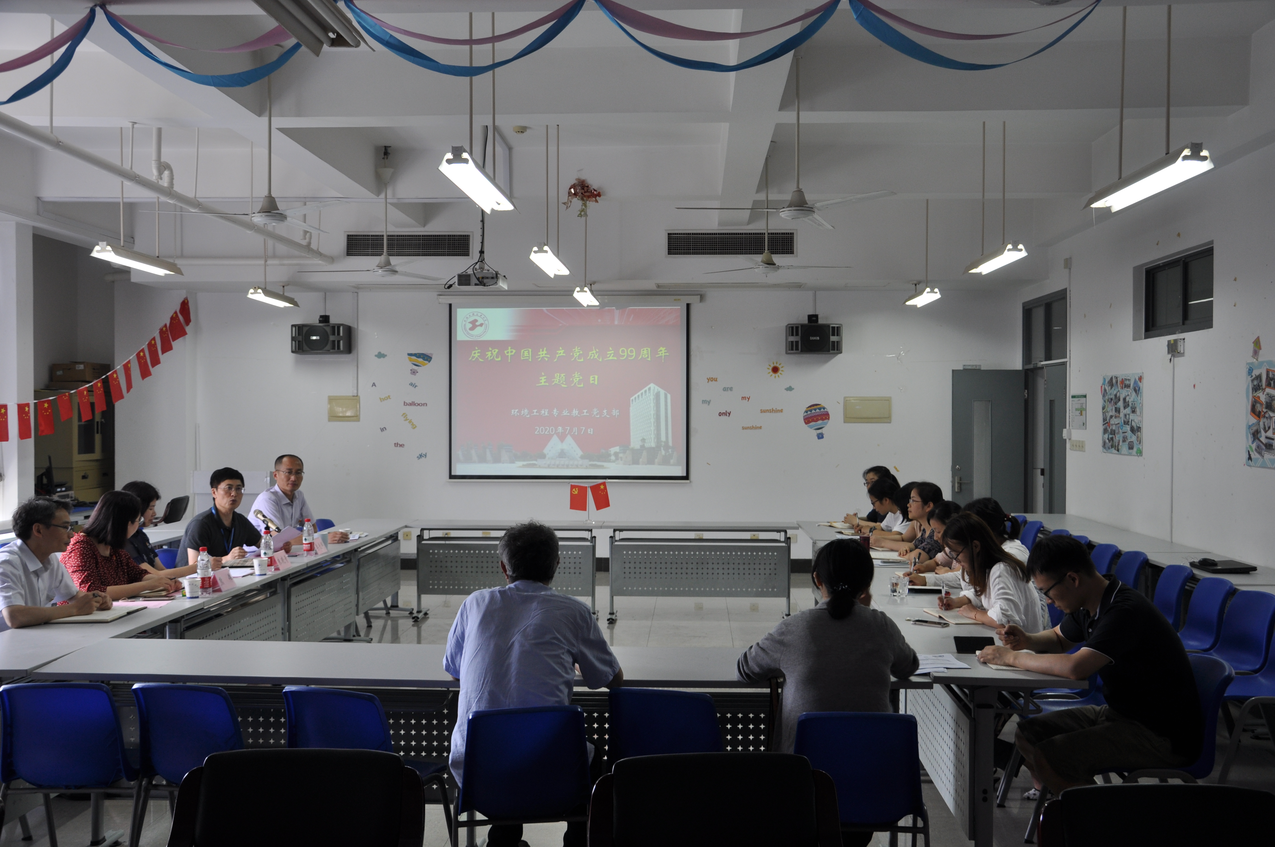 化学化工公司党委环境工程专业教工党支部于2020年7月7日中午12:30在实训楼4405开展了庆祝中国共产党成立99周年主题党日。会议由支部书记胡婷莛同志主持,公司党委副书记、副董事长朱晓青,党委组织员熊伟,公司党委书记宋勤健,公司党委副书记、经理饶品华,李光辉教授和支部全体党员同志参加。
